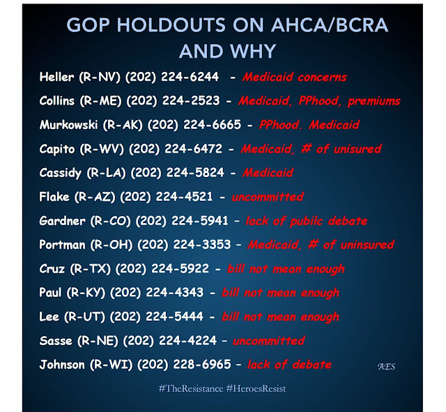 WED June 28, 2017 UPDATE: "Separate surveys from NPR/PBS Newshour/Marist, USA Today/Suffolk University and Quinnipiac University — all released on Wednesday — show fewer than one-in-five voters back the GOP push to repeal and replace Obamacare. They were all conducted prior to McConnell’s decision to pull the bill on Tuesday — but it’s a jaw-dropping lack of support for major legislation" via Politico